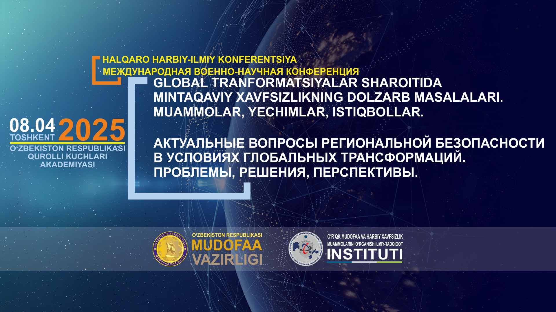 100052, Toshkent sh., Mirzo Ulug'bek tumani, Parkent ko'chasi, 21-uy (O'R QK Akademiyasining 4-o'quv binosida).